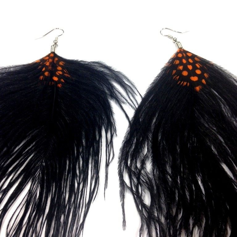 S_600030B - IBIZA LOOK Ohrringe mit PFAUFEDER (1.)