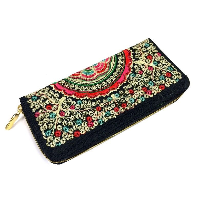 S_812022Z - WALLET BLACK EIGENSCHAFTEN FLOWER Rosa / Grün (1)