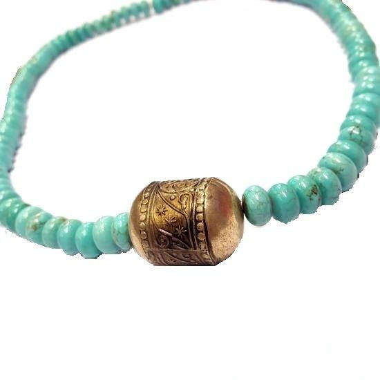 S_600575 - 9-Slice-Halskette Gold LOOK natürliche Türkis (1)