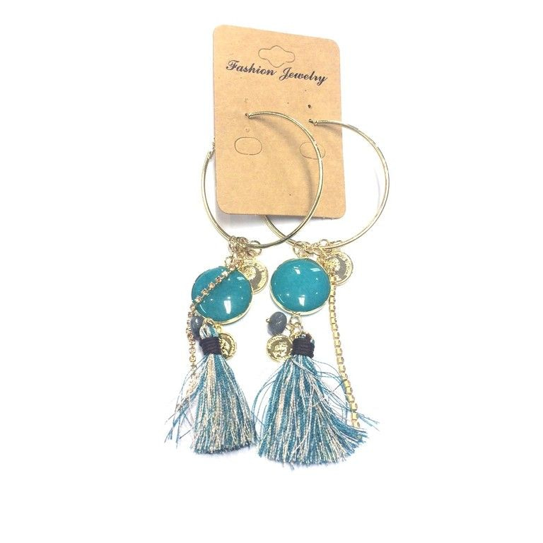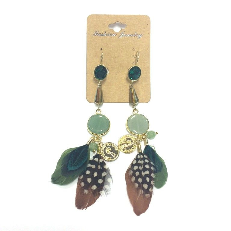 S_6113309 - LUXURY GREEN Ohrringe mit Federn, Münzen und STONE (1)