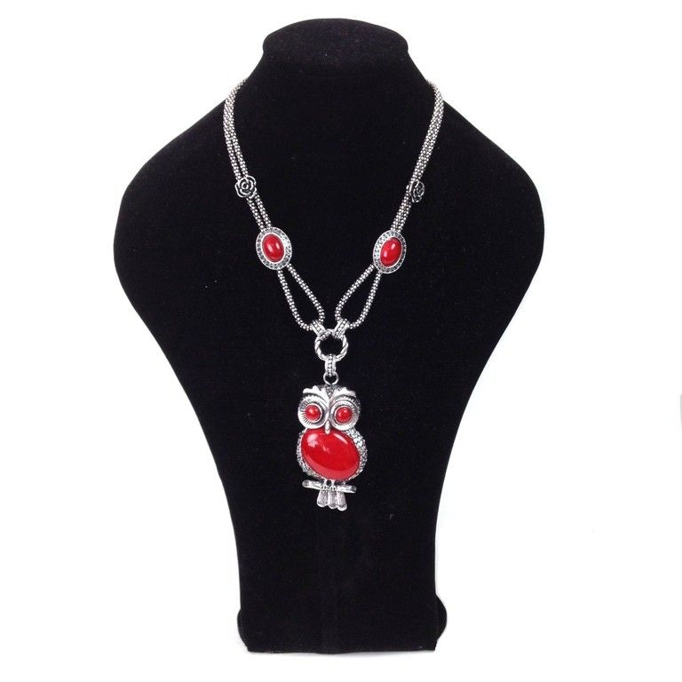 S_600434B - Eulen-Halskette mit roten Blumen (1)