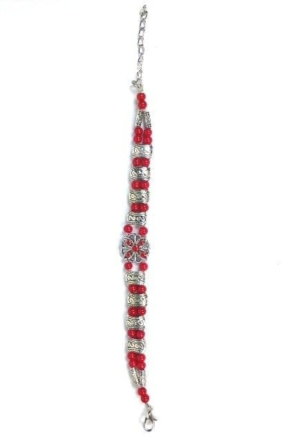 S_600620N - LOOK ARMBAND SILBER / ROT MIT BLUME (12st)
