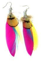 S_600037M - IBIZA MIT-Feder-Ohrringe LOOK GRAU / ROT / GELB (1.)