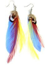 S_600037P - IBIZA MIT-Feder-Ohrringe LOOK GRAU / ROT / GELB (1.)