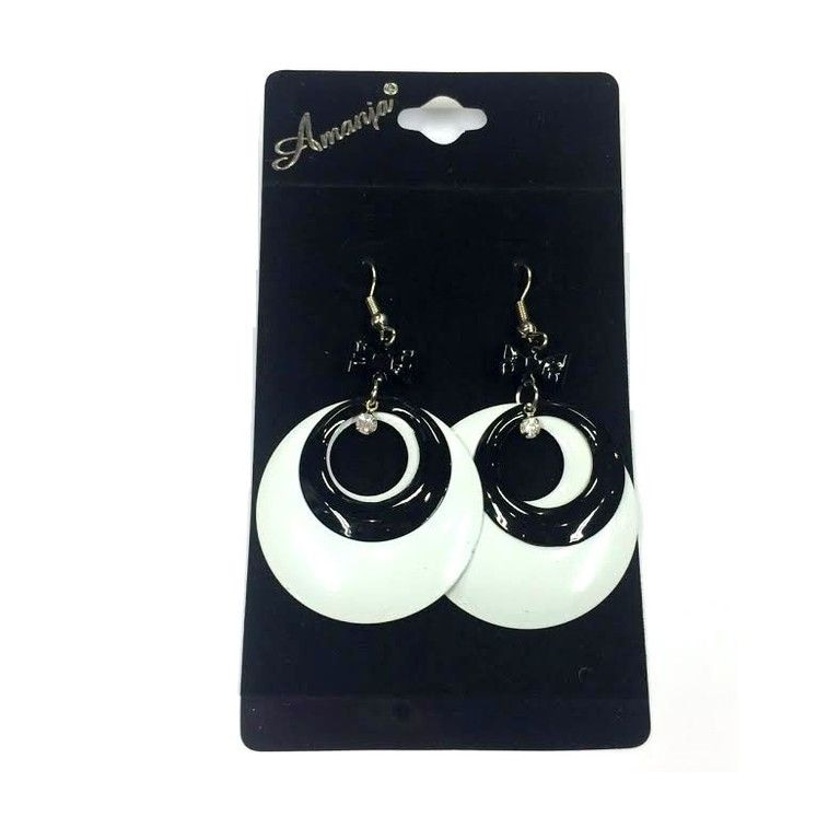 S_89871 - Art.nr: 89871 - OHRRINGE BLACK / WHITE CIRCLE (12pcs)