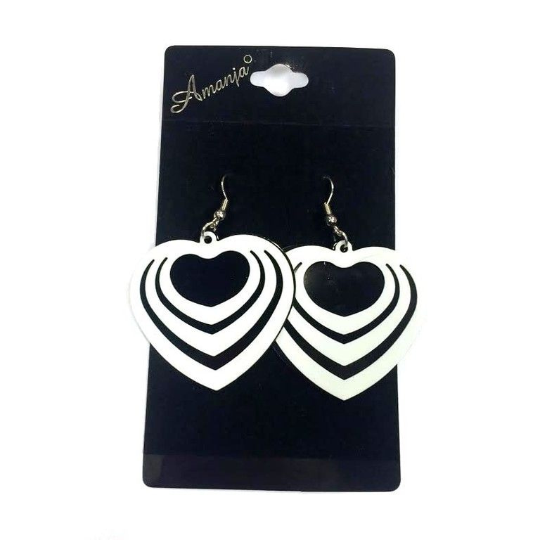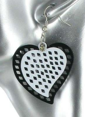 S_89874 - Art.nr: 89874 - OHRRINGE BLACK / WHITE HART (12pcs)