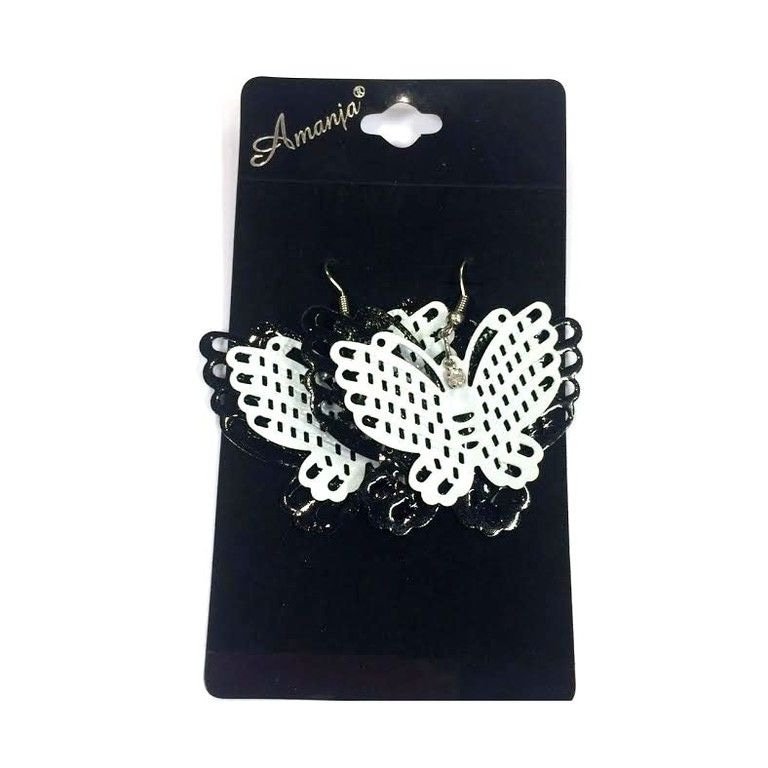 S_89873 - Art.nr: 89873 - Ohrringe schwarz / weiße Schmetterling (12pcs)