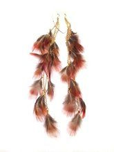 S_600035H - IBIZA LOOK Ohrringe mit Federn RED / GREY / BROWN (1.)