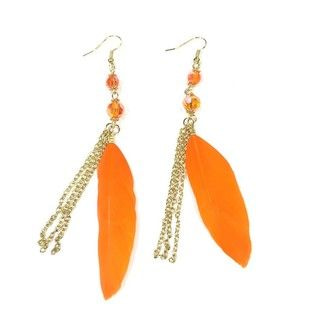 S_600745C - Feder-Ohrringe mit Perlen ORANGE (1)