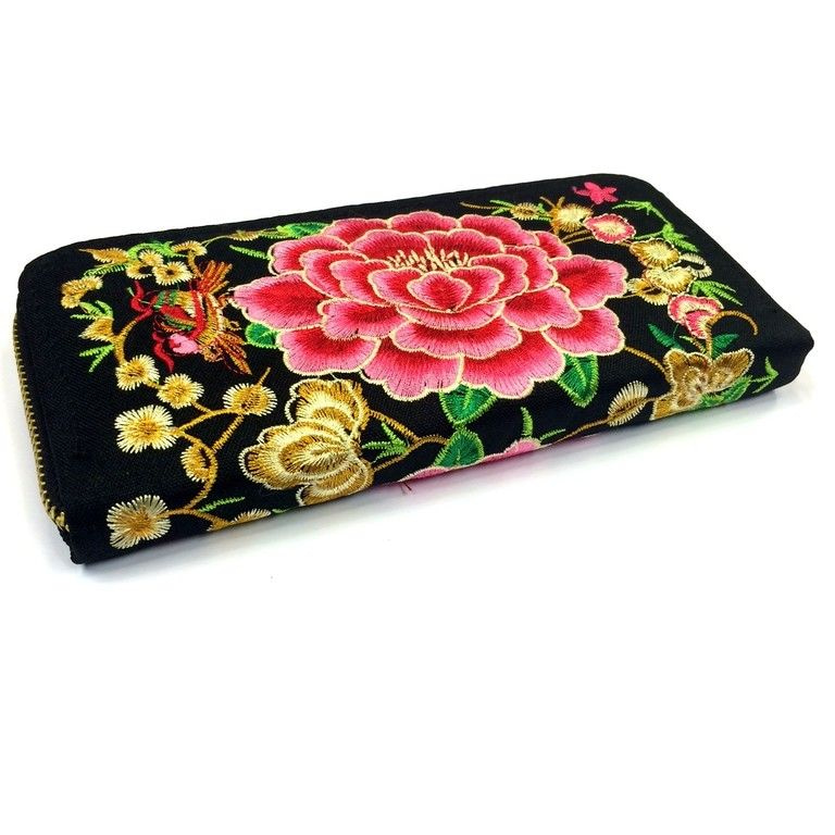 S_812022L - WALLET BLACK EIGENSCHAFTEN Blumen Rosa (1)