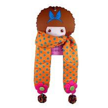 S_812243FC - KINDER Schal DOTS ORANGE CREAM MIT GRÜNEN / lila Blüte (1)