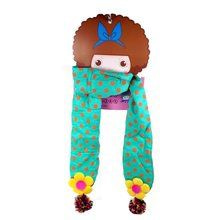 S_812243BA - KINDER SCHAL MINTGRÜN mit rosa Punkten ORANGE / GELBE BLUME (1)