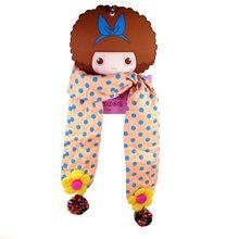 S_812243CC - KINDER SCHAL Lachs mit grünem Punkt-blaue / purpurrote Blume (1)