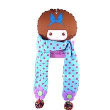 S_812243EC - KINDER Schal hellblaue Punkte PINK MIT GRÜNEN / lila Blüte (1)