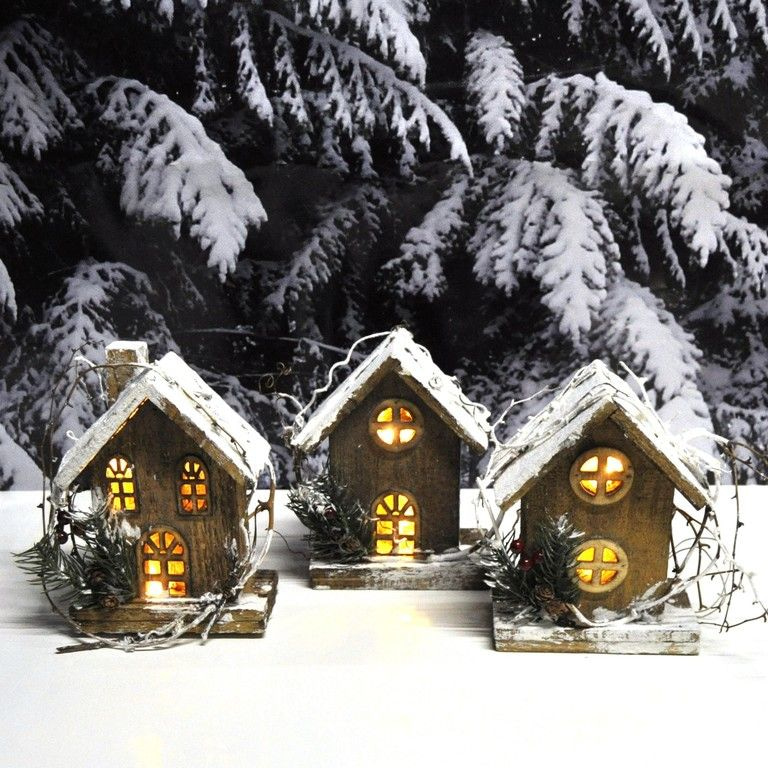 75983 - LUXUS WEIHNACHTSDEKORATION HÄUSER MIT LICHT (15st).