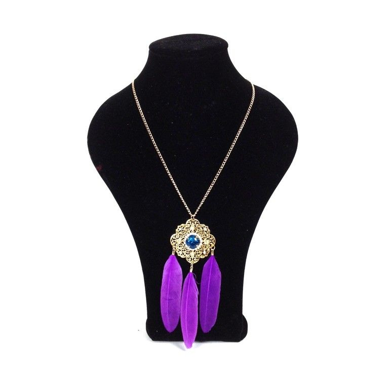 S_600159F - HALSKETTE MIT TÜRKIS STEIN UND FEDER STRASS-PURPLE (1.)
