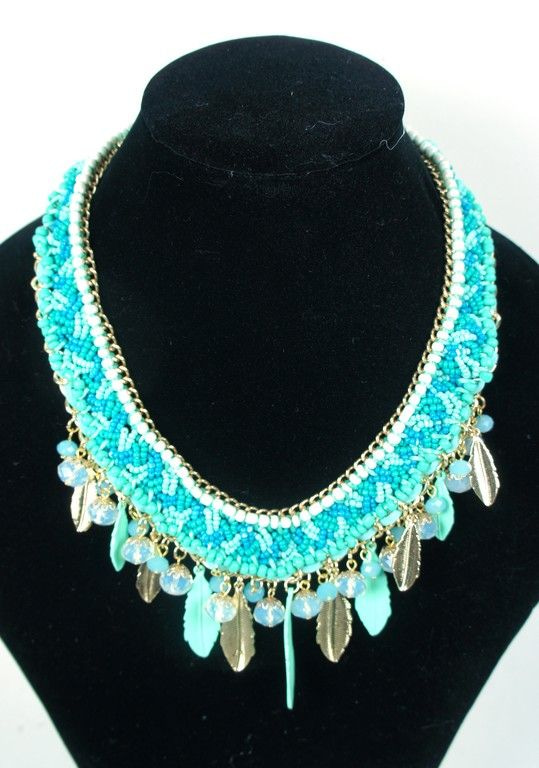 S_600159I - HALSKETTE MIT TÜRKIS STEIN UND FEDER STRASS-DARK (1.)