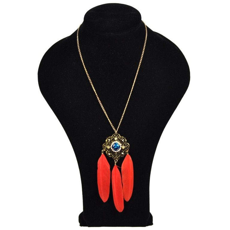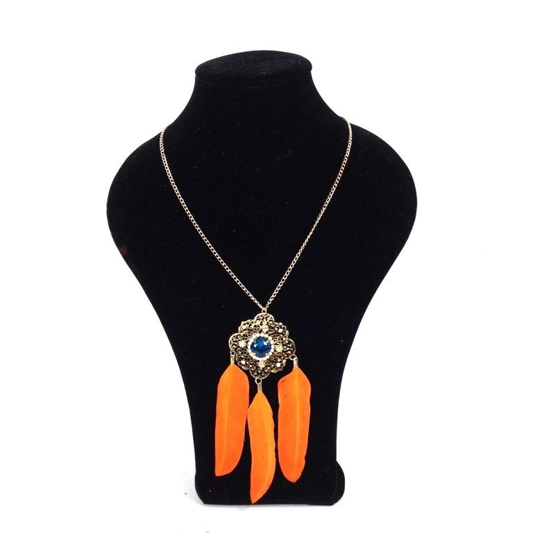 S_600159A - HALSKETTE MIT TÜRKIS STEIN UND FEDER Strass-ORANGE (1.)
