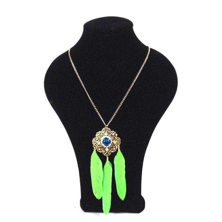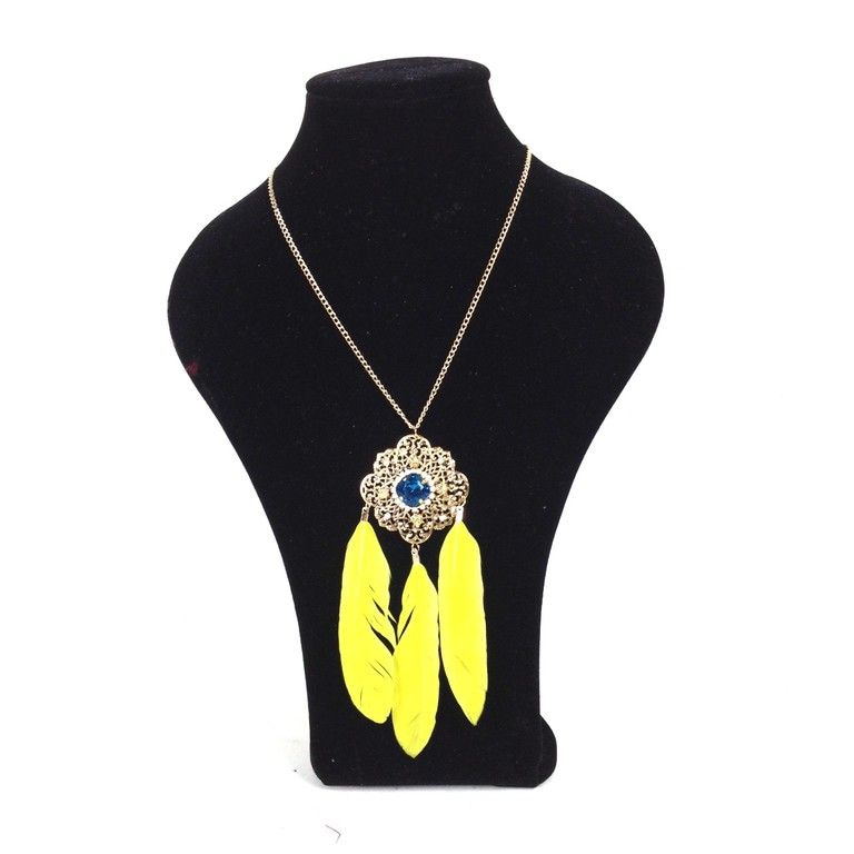 S_600159C - HALSKETTE MIT TÜRKIS STEIN UND FEDER Strass-GELB (1.)