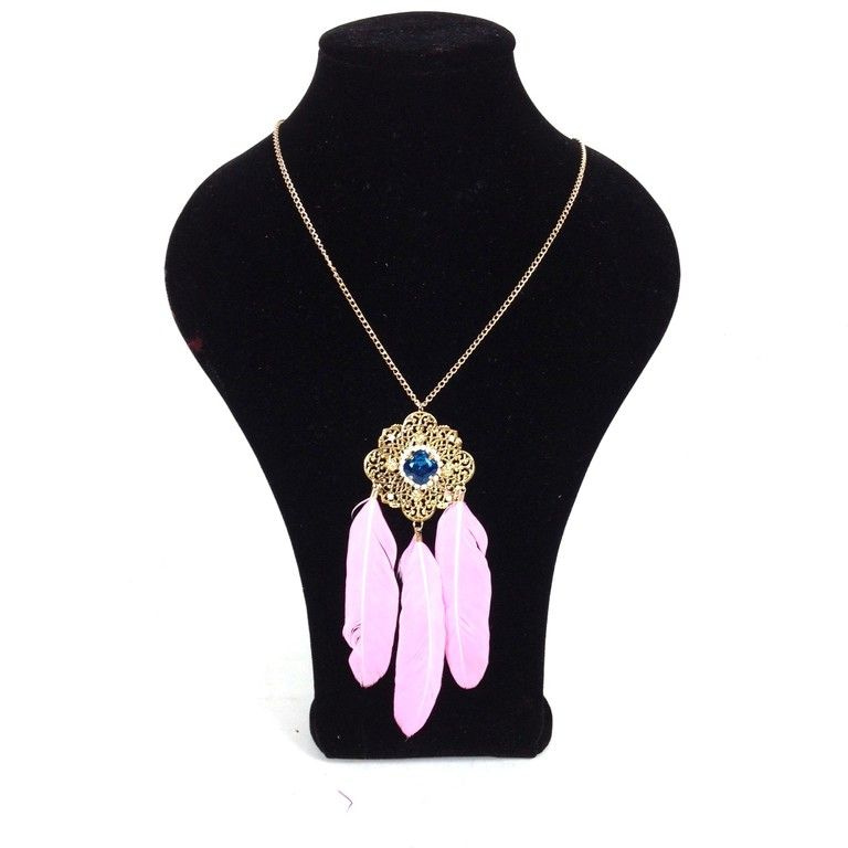 S_600159H - HALSKETTE MIT TÜRKIS STEIN UND FEDER STRASS-PINK (1.)