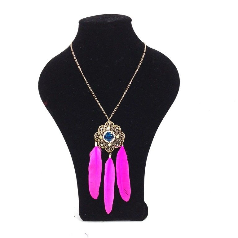 S_600159D - HALSKETTE MIT TÜRKIS STEIN UND FEDER Strass-FUCHSIA (1.)
