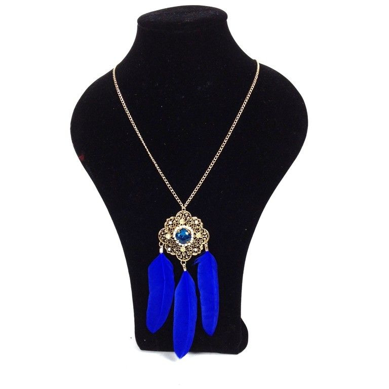 S_600159J - KETTE mit türkisfarbenem STRASS-STEIN UND ROTE FEDER (1)