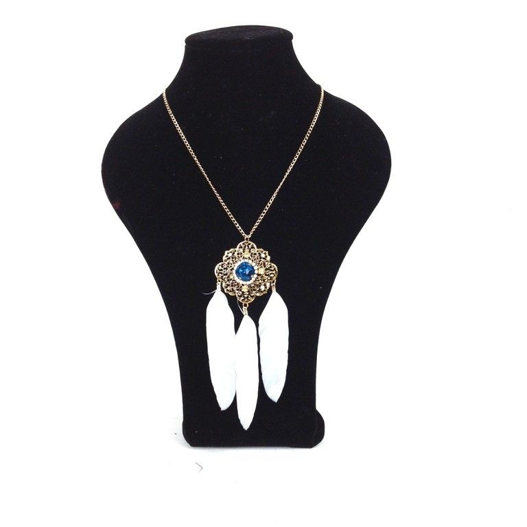 S_600159G - HALSKETTE MIT TÜRKIS STRASS-STEIN UND FEDER WHITE (1.)