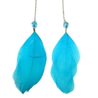 S_600787B - OHRRINGE eine Feder und Perlen BLUE (1)