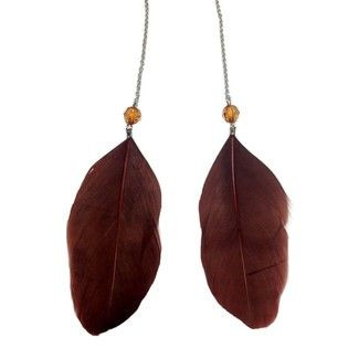 S_600787F - Ohrringe Eine Feder und BROWN BEAD (1.)