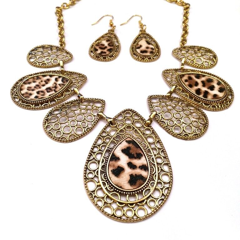 S_600131 - IBIZA LOOK Halskette und Ohrringe MIT TIGER PRINT (1.)