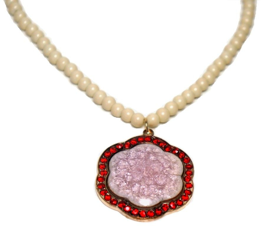 S_700306A - LUXUS-Blumen-Halskette mit Strass Rot / Rosa (1)