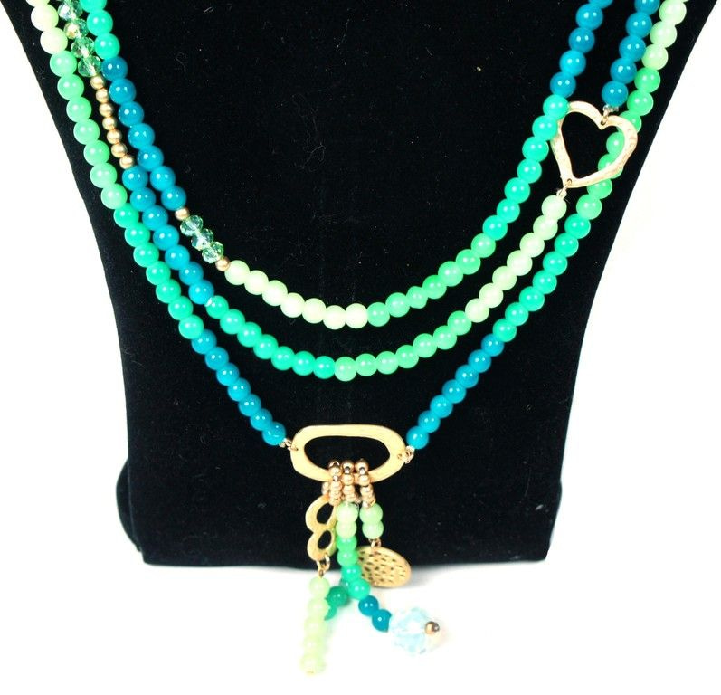 S_750604 - PERLENHALSKETTE GRÜN / BLAU (4 Stück)