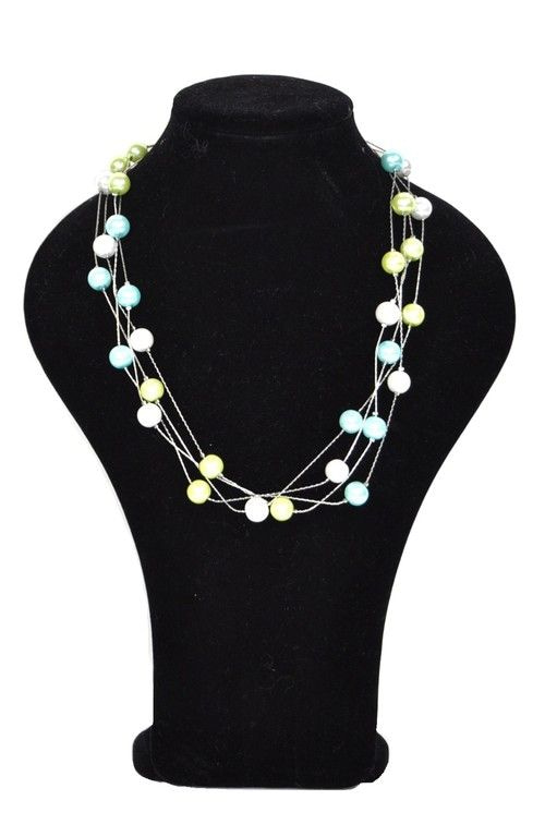 S_750704 - PEARL HALSKETTE GRÜN / BLAU KURZ (4 Stück)