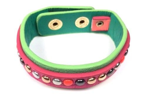 S_8765407 - IBIZA LOOK ARMBAND GRÜN / FUCHSIA STUDS (1.)
