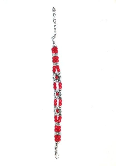 S_600620Q - LOOK ARMBAND SILBER / ROT MIT BLUME (12st)