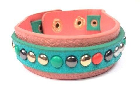 S_8765304 - IBIZA LOOK ARMBAND SALMON / GRÜN STUDS (1.)