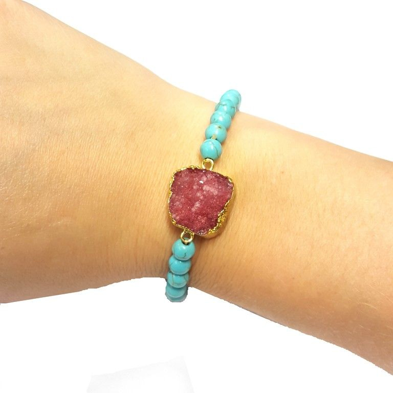S_600492 - LUXURY Türkis-Armband MIT STEIN ROSE (1.)