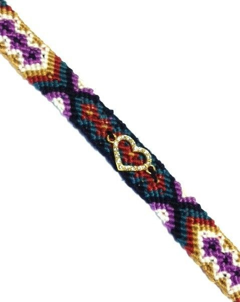 S_600041B - IBIZA LOOK geflochten Armband mit bunten Rhinestone-Herz (1.)