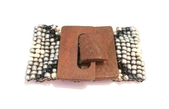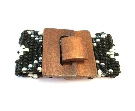 S_811381F - IBIZA LOOK ARMBAND AZTEK WOOD BUCKLE BLACK / WHITE / SILVER (1.)