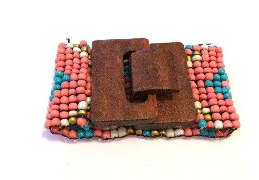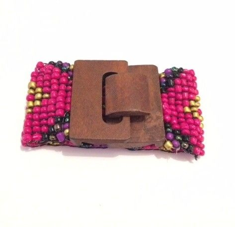 S_811381D - IBIZA LOOK ARMBAND AZTEK WOOD BUCKLE PINK (1.)