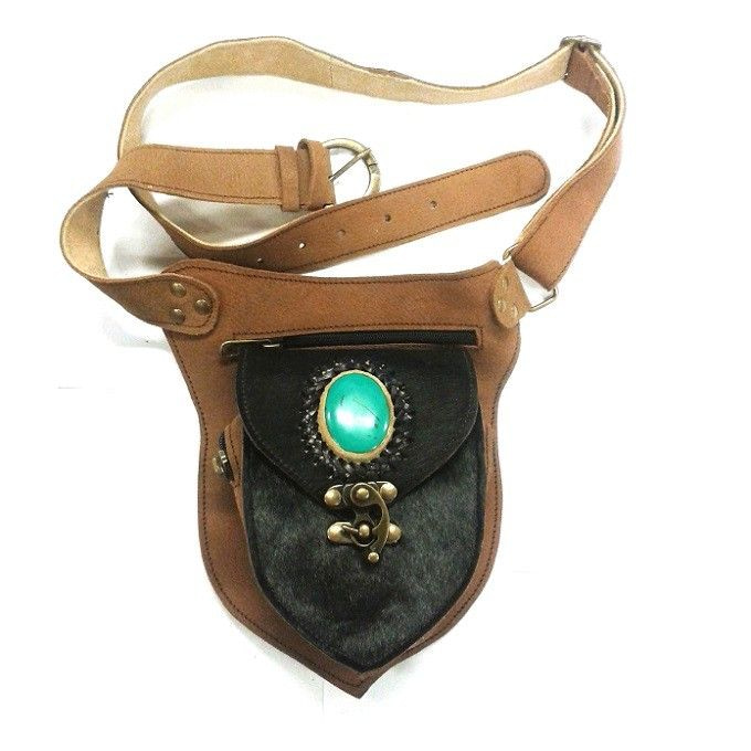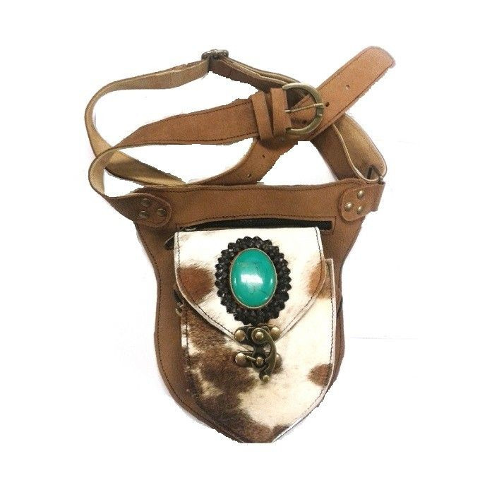 S_619131A - Gürteltasche BROWN LEDER Tier mit Türkisstein (1)
