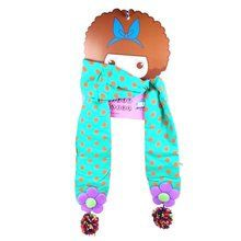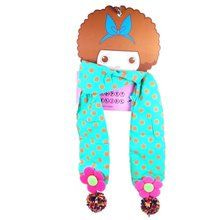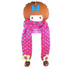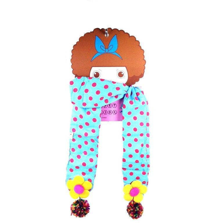 S_812243ED - KINDER Schal hellblaue Punkte PINK MIT GRÜNEN / ROSAFARBENE BLUME (1)