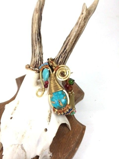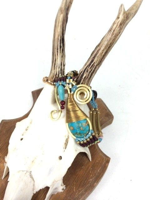 S_600201E - Handarbeit Armband BLUE STONE IBIZA ORIGINALE COGNAC (1.)