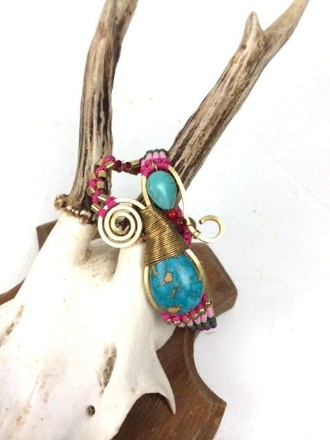 S_600201C - Handarbeit Armband BLUE STONE IBIZA ORIGINALE PINK (1.)