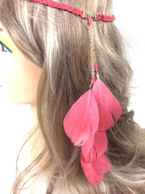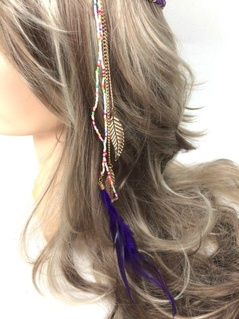 S_600024F - IBIZA LOOK geflochtenes Haar BAND MIT FEDERN PURPLE (1.)