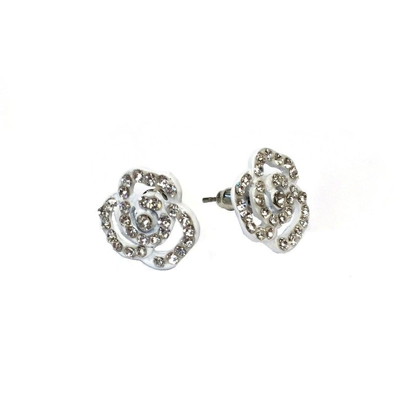 S_795306 - STRASS OHRRINGE WEIßE BLUME (4pc)