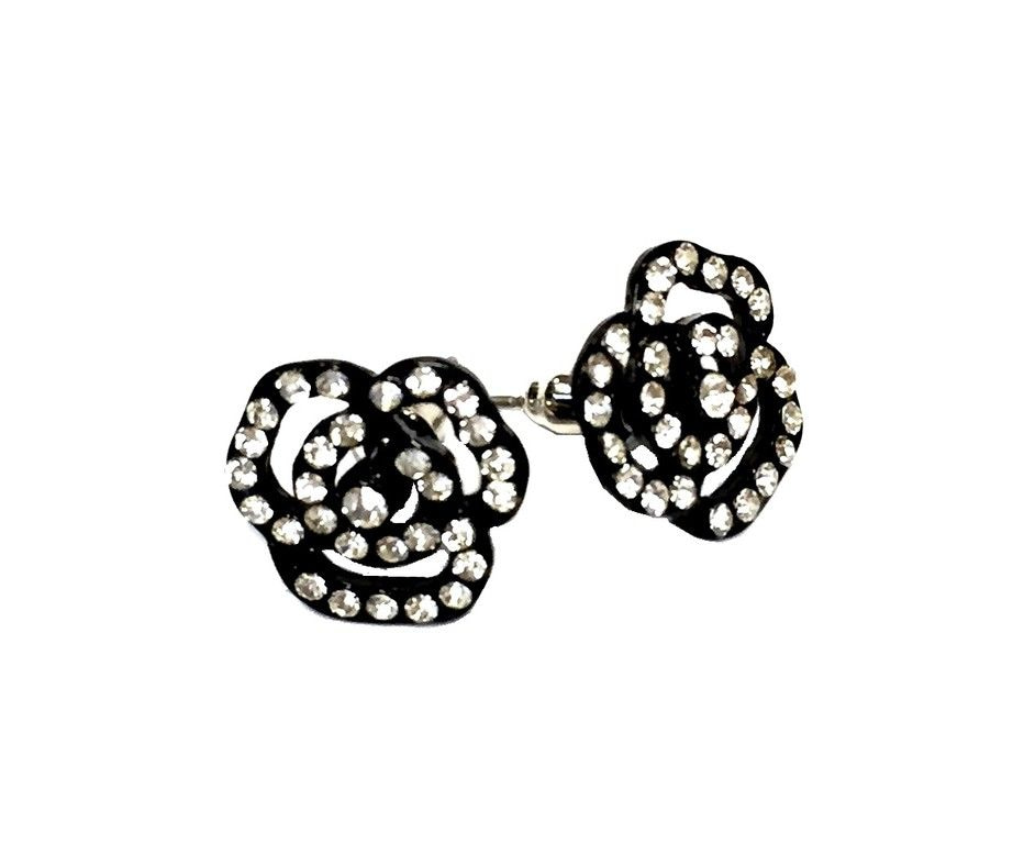 S_795305 - STRASS OHRRINGE Blume schwarz (4st)