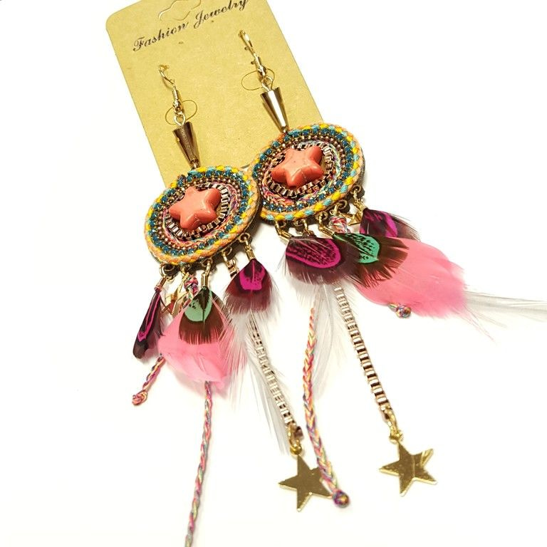 S_6450304 - OHRRINGE bunten Federn & Zöpfe - MODEL STAR (1.)