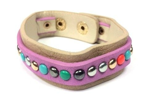 S_8765305 - IBIZA LOOK ARMBAND TAUPE / PURPLE STUDS (1.)