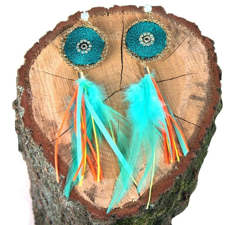 S_600787B - OHRRINGE eine Feder und Perlen BLUE (1)